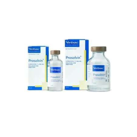 Prosolvin is a veterinary injectable solution containing Luprostiol, a synthetic prostaglandin analogue. It is formulated to regulate reproductive cycles in cattle, pigs, and horses, making it a key tool in modern veterinary reproductive management.